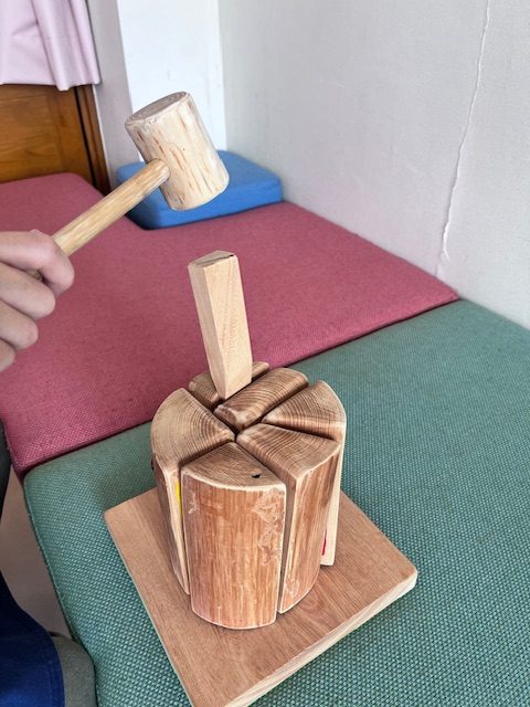 キッズルームで遊べる木のおもちゃを新たに2種類寄贈していただきました。