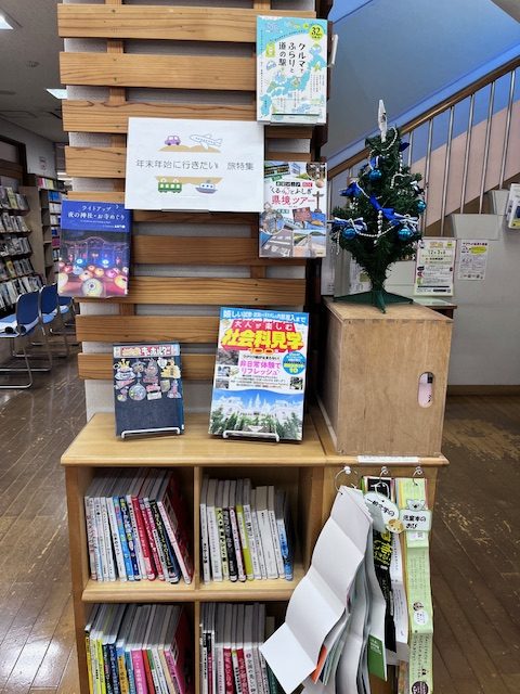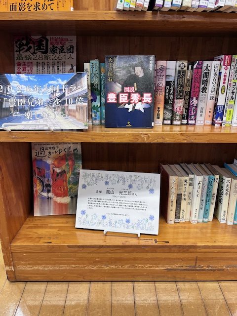 今月の展示は『年末に行きたい旅特集』『朝ドラ「ばけばけ」を10倍楽しむ!』『2026年大河ドラマ「豊臣兄弟」を10倍楽しむ!』になっています。また、11月にお亡くなりになられた嵐山光三郎さんの追悼コーナーもあります。