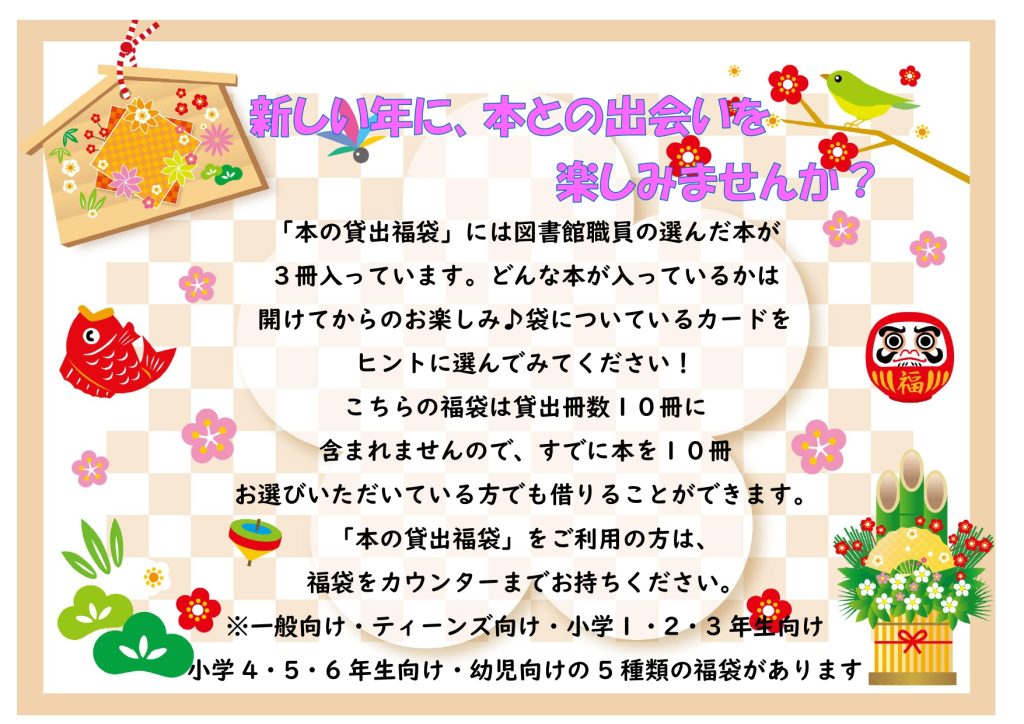 例年、大好評の本の貸出福袋を開催します!