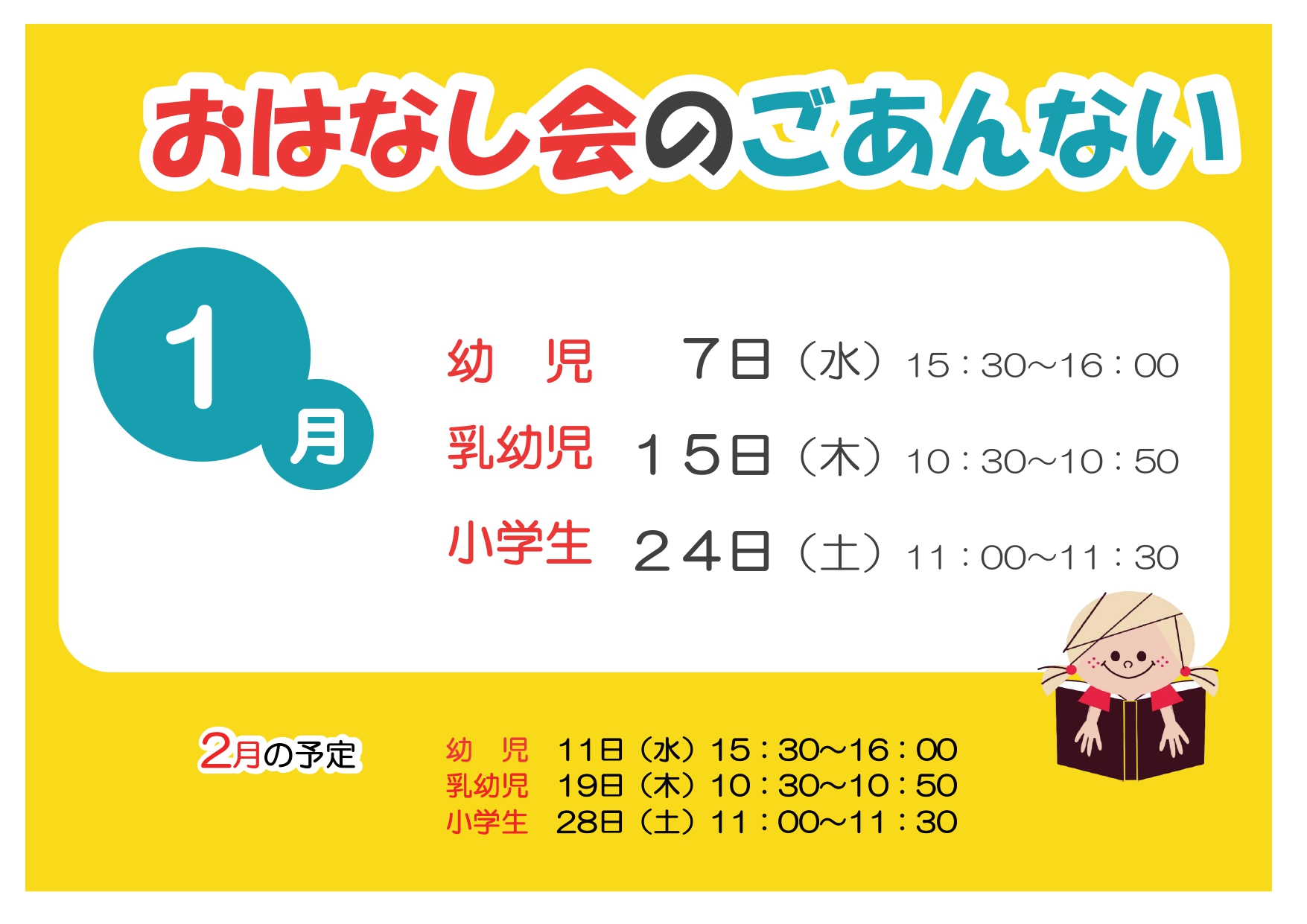 1月の幼児おはなし会を1月7日(水)に行います♪