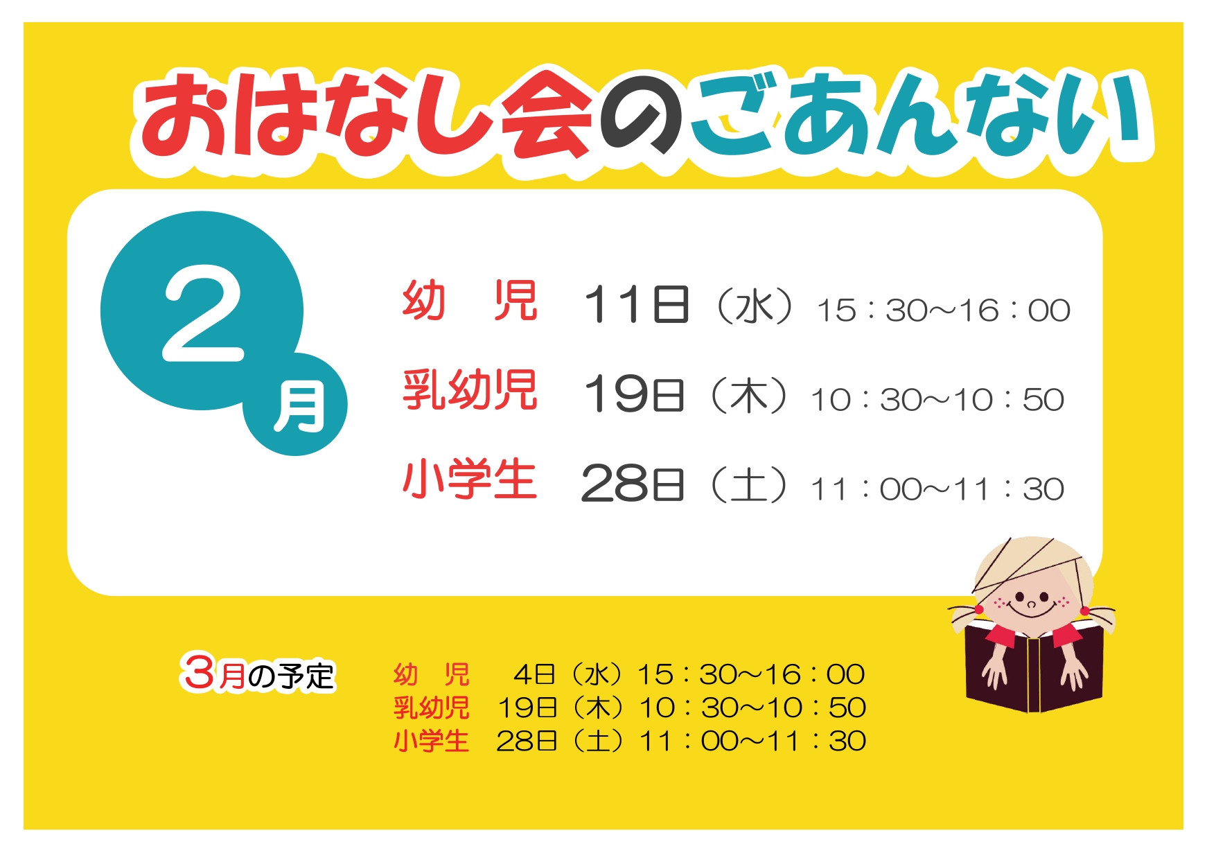 2月の幼児おはなし会を2月11日(水)に行います♪